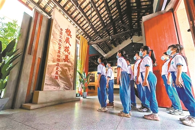 花都學子參觀中國工農紅軍第四師成立大會遺址。