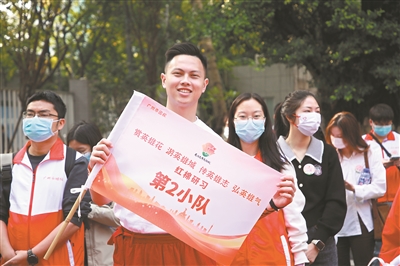 紅棉研習(xí)隊(duì)伍拿到隊(duì)旗,準(zhǔn)備出發(fā)