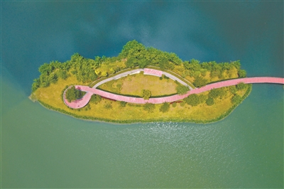 俯瞰南沙鳳凰湖,碧道連著湖心。