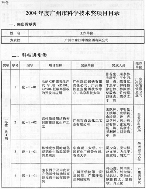 附件:2004年度廣州市科學(xué)技術(shù)獎項目目錄