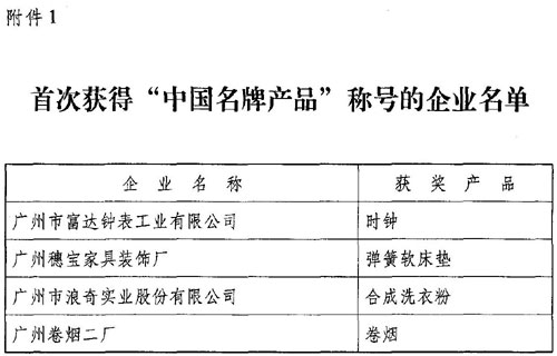 1.首次獲得“中國名牌產品”稱號的企業名單