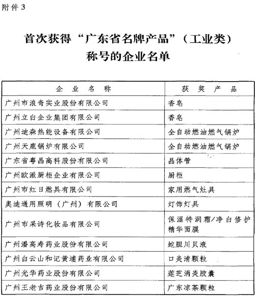 3.首次獲得“廣東省名牌產品”(工業類)稱號的企業名單