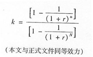 (r為貼現率,取出讓當日銀行一年期固定資產貸款利率。n為實際出讓年限,N為法定最高出讓年限)。其中貼現率取出讓當日銀行一年期固定資產貸款利率。