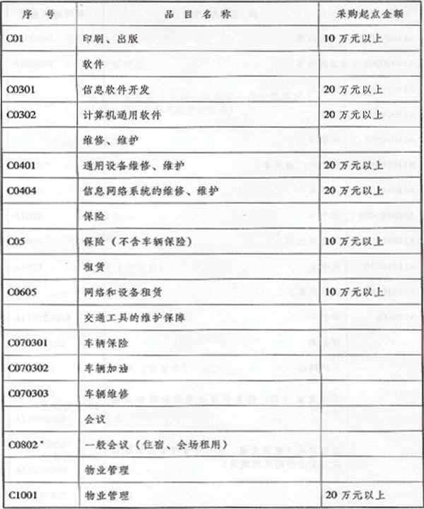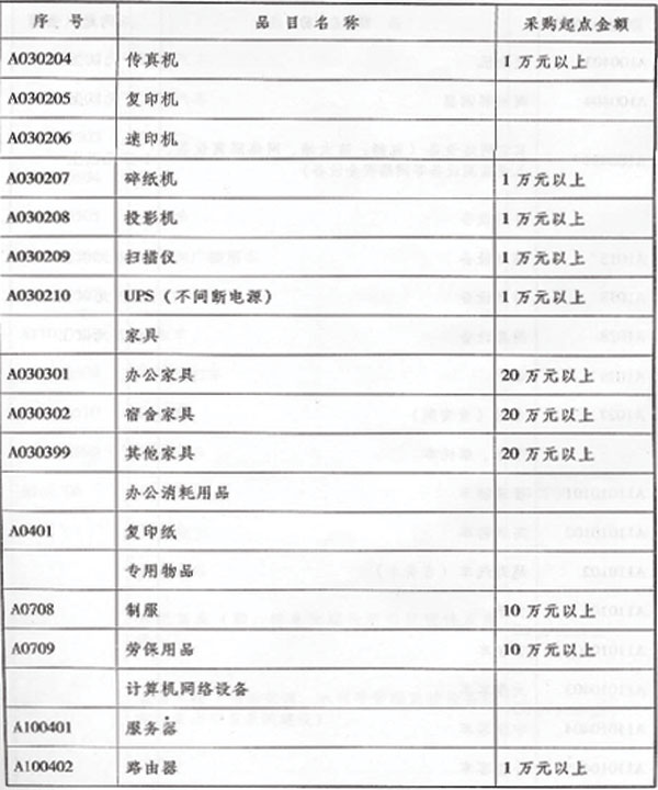 二、政府采購限額標準(集中采購目錄以外、達到采購限額標準以上的采購項目實行分散采購)。