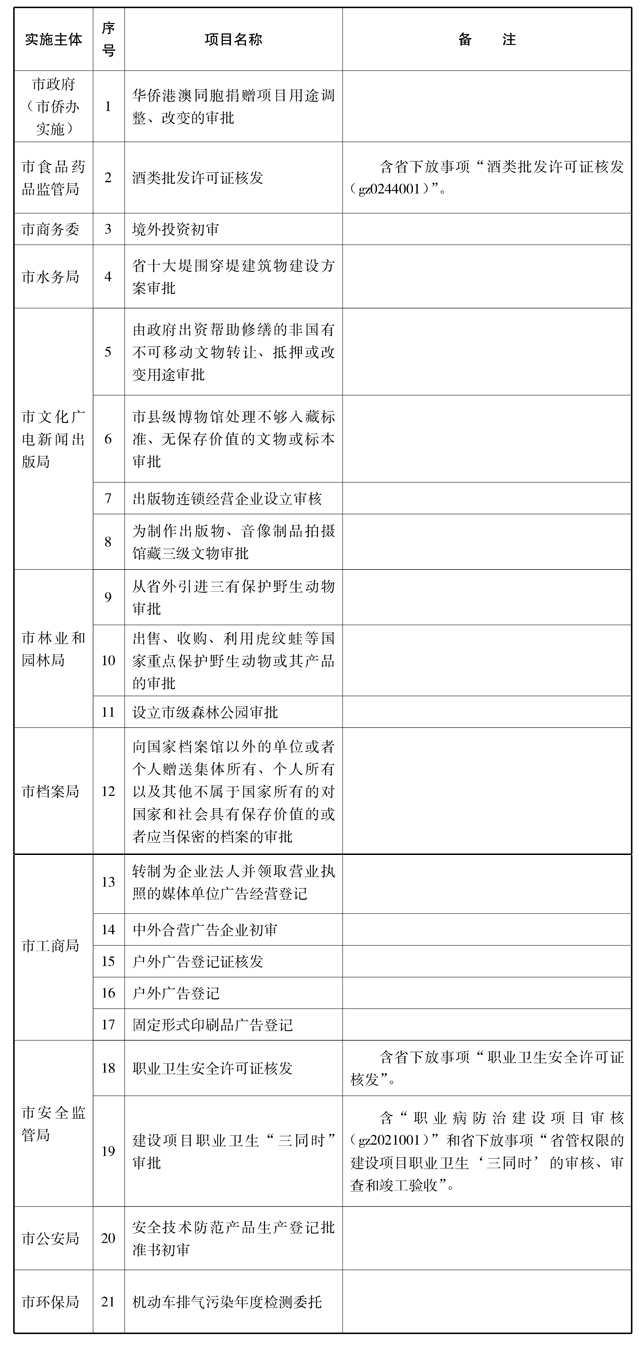 廣州市人民政府關(guān)于保留下放取消行政許可備案事項(xiàng)的決定