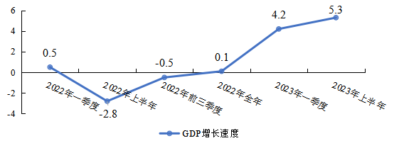 圖1:2022年以來越秀區地區生產總值增速圖(%)