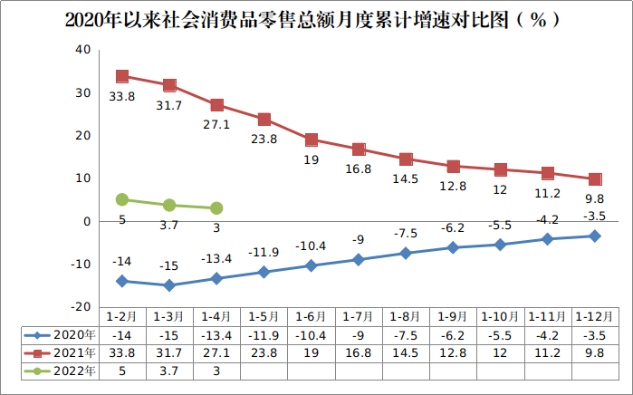 備注:2022年1-3月,全市社會消費品零售總額2709.34億元,增長3%,增速低于全國(3.3%),高于全?。?.7%)、深圳(-1.6%)、北京(0.7%)、上海(-3.8%),比1-2月回落2個百分點。其中,3月當(dāng)月,社零總額下降1%,消費市場恢復(fù)趨緩。