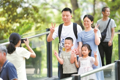 暑假,游客在廣州動物園內留影。