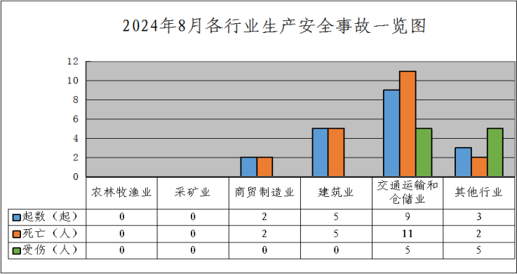 據統計,8月份,全市發生各類生產安全事故19起、死亡20人、受傷10人,同比事故起數下降13.6%、死亡人數持平、受傷人數下降33.3%。其中,發生1起較大事故,造成3人死亡、2人受傷。