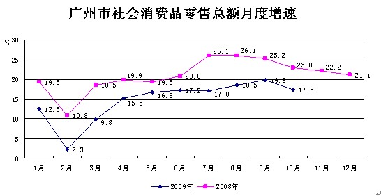 消費市場需求日漸旺盛。近期,廣州、佛山聯手開展了廣佛金秋歡樂購物節活動。廣州還組織了廣貨北上、汽車下鄉、家電下鄉和家電以舊換新等促銷活動。在一系列擴大消費需求措施的帶動下,我市消費市場需求日漸旺盛。啟動家電以舊換新一個多月來,廣州市家電以舊換新超過10萬臺,銷售額達到近4億元,居全省前列。尤其在國慶、中秋黃金周期間,婚宴家宴帶旺餐飲市場,景點、商場游客爆滿,商品市場銷售火爆。1―10月累計,全市實現社會消費品零售總額2978.76億元,同比增長14.8%,增幅比上半年提高2.4個百分點。其中,批發和零售業、住宿和餐飲業分別實現零售額2475.26億元和503.50億元,同比分別增長14.0%和18.9%。全市批發和零售業商品銷售總額11951.18億元,同比增長7.1%,增幅比上半年提高2.5個百分點。