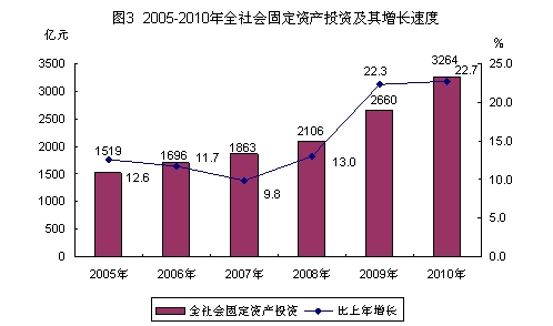 固定資產投資:全社會固定資產投資快速增長。全年完成全社會固定資產投資3263.57億元(包括省屬跨市項目),增長22.7%;其中,房地產開發(fā)投資983.66億元,增長20.3%。新增固定資產2370.25億元,增長50.7%。市屬單位(含區(qū)、縣級市及其他)完成投資2616.30億元,占80.17%;中央、省屬單位完成投資647.27億元,占19.83%。