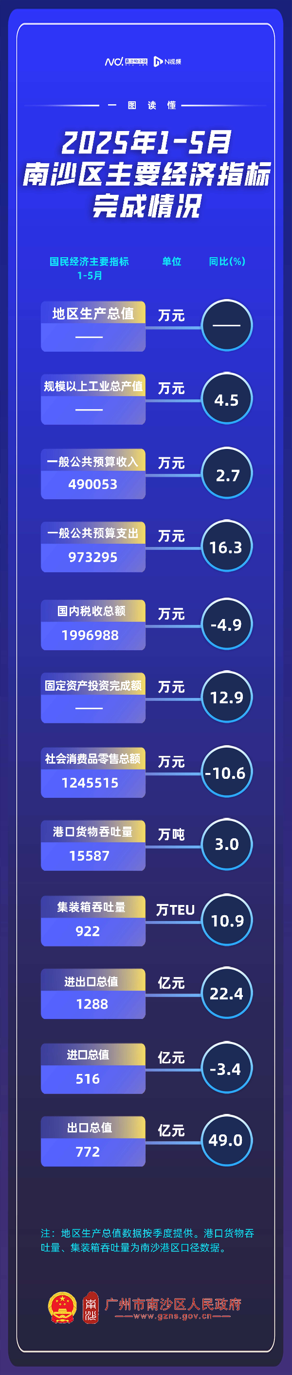 一圖讀懂2025年1-5月南沙區主要經濟指標完成情況