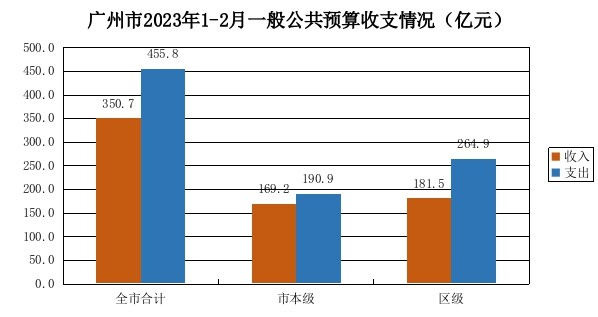 1-2月,全市一般公共預算收入350.7億元,同比增長1%,其中:市本級收入169.2億元,同比增長3.7%;區級收入181.5億元,同比下降1.4%。全市一般公共預算支出455.8億元,同比增長1.3%。其中:市本級支出190.9億元,同比增長10%;區級支出264.9億元,同比下降4.1%。