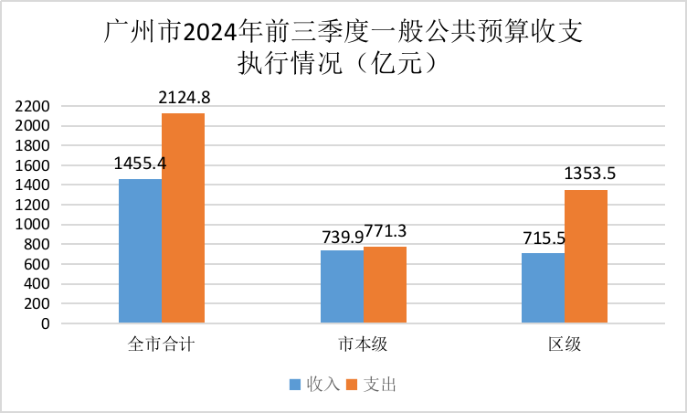 1-9月,全市一般公共預算收入1,455.4億元,同比增長0.3%,其中:市本級一般公共預算收入739.9億元,同比增長2.7%;區級一般公共預算收入715.5億元,同比下降2%。