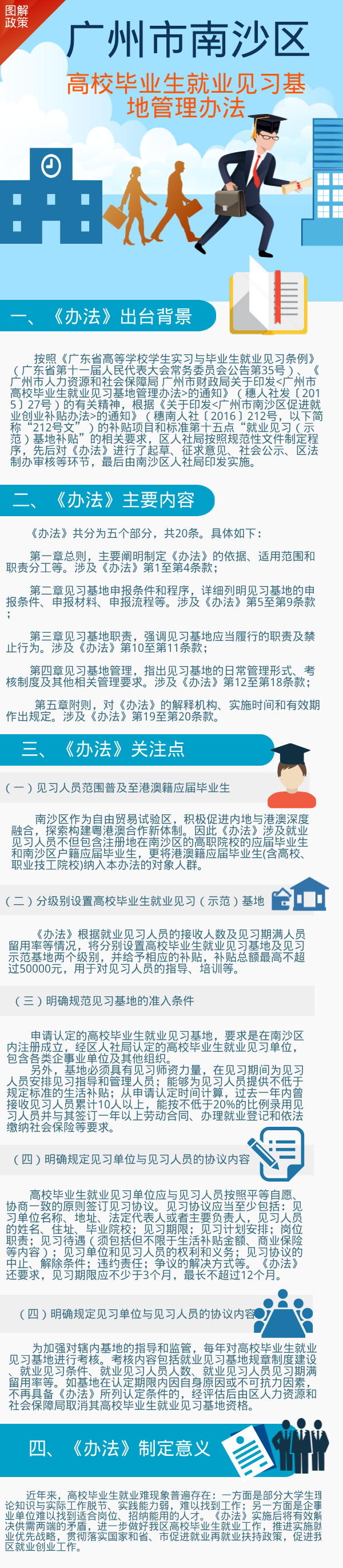 【一圖讀懂】《廣州市南沙區(qū)高校畢業(yè)生就業(yè)見習(xí)基地管理辦法》