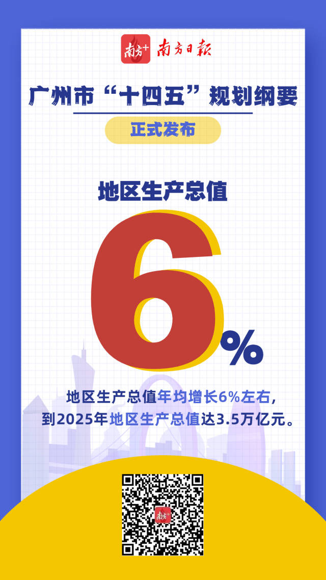 “十四五”時期,廣州經濟年均增長6%左右,到2025年地區生產總值達3.5萬億元。