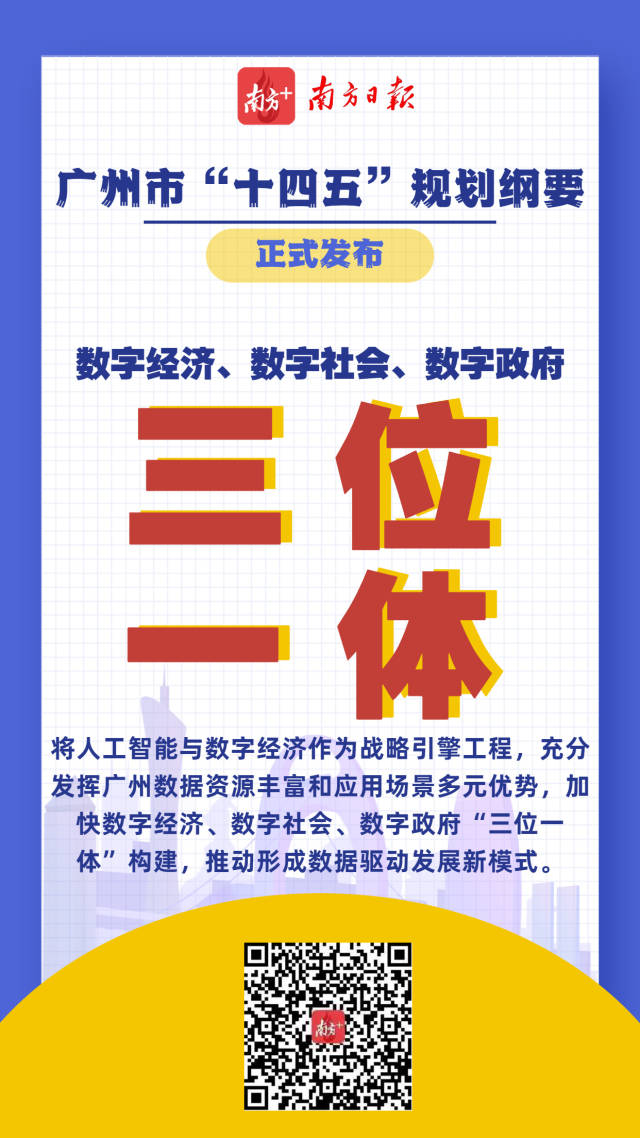 《綱要》提出,將人工智能與數字經濟作為戰略引擎工程,充分發揮廣州數據資源豐富和應用場景多元優勢,加快數字經濟、數字社會、數字政府“三位一體”構建,推動形成數據驅動發展新模式。