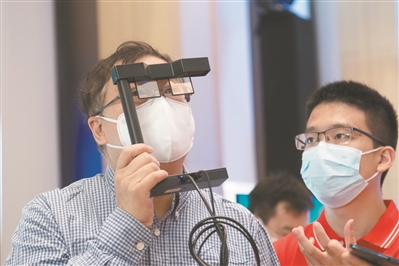 廣東粵港澳大灣區國家納米科技創新研究院展出的全息混合現實納米光波導眼鏡