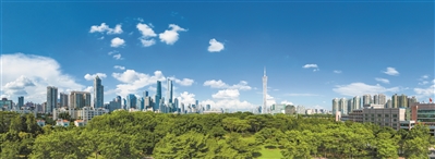 陽光下的“廣州綠色地平線”蔚為壯觀
