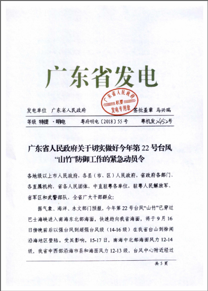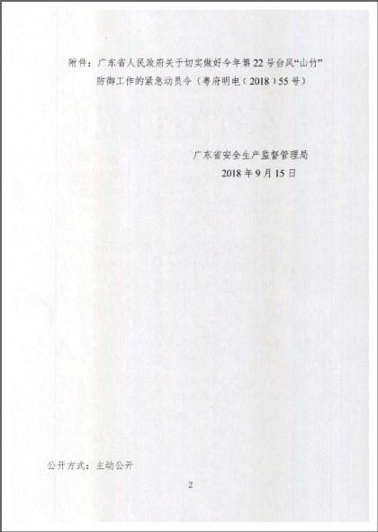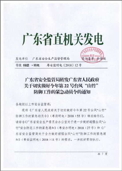 轉(zhuǎn)發(fā)廣東省安全監(jiān)管局轉(zhuǎn)發(fā)廣東省人民政府關(guān)于切實做好今年第22號臺風(fēng)“山竹”防御工作的緊急動員令的通知