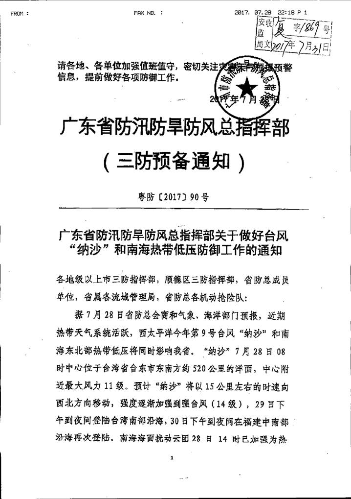 轉發廣東省防汛防旱防風總指揮部關于做好臺風“納沙”和南海熱帶低壓防御工作的通知