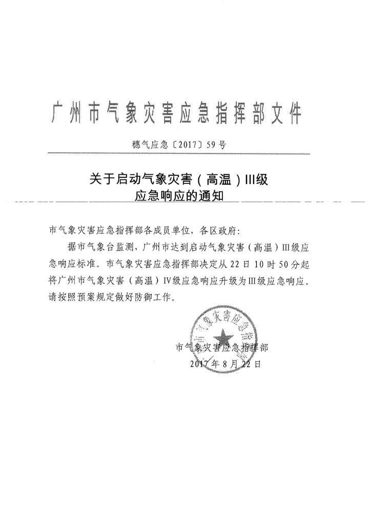 轉發關于啟動氣象災害(高溫)Ⅲ級應急響應的通知