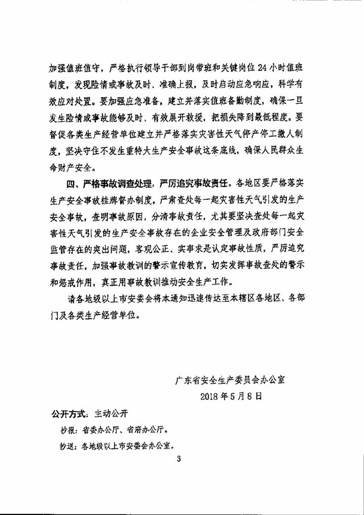 轉發廣東省安委會辦公室關于加強強降雨安全防范工作的通知,請各單位做好防御工作