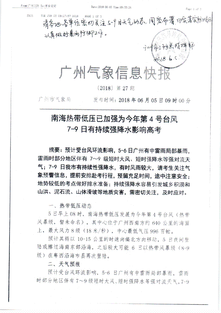 南海熱帶低壓已加強為今年第4號臺風,7-9日有持續強降水影響高考