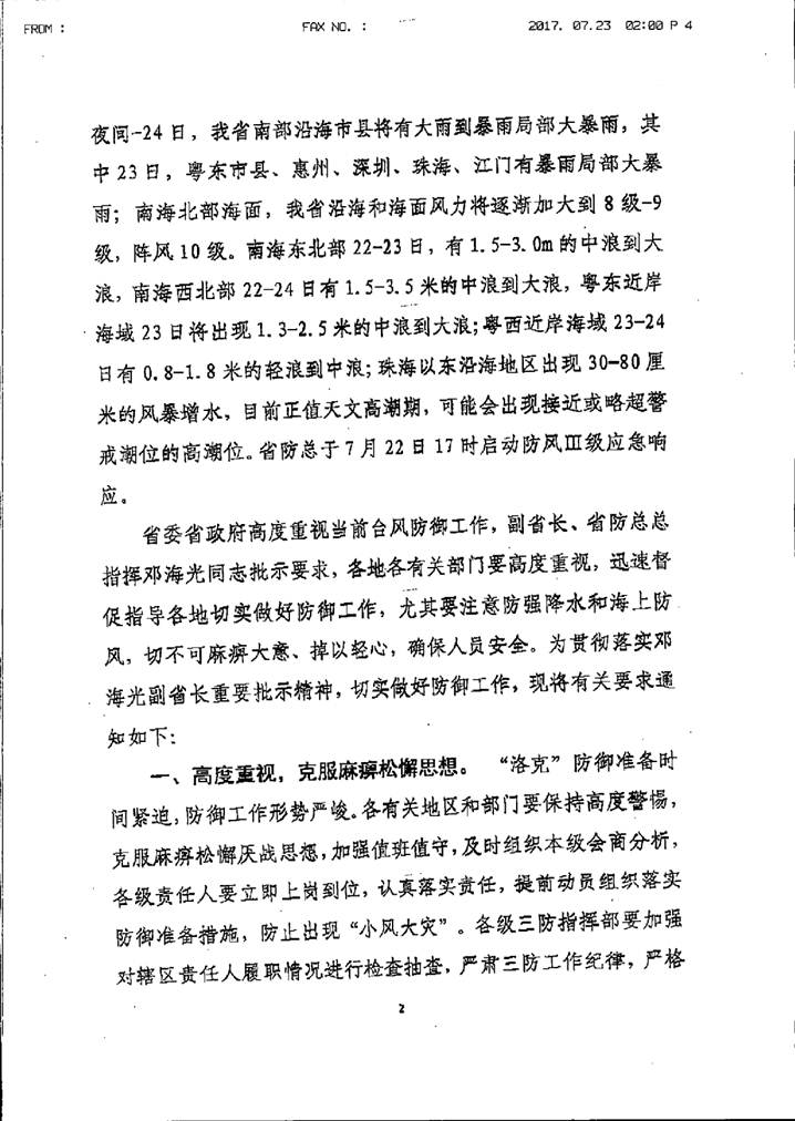 轉(zhuǎn)發(fā)廣東省防汛防旱防風(fēng)總指揮部關(guān)于進(jìn)一步做好今年第7號臺風(fēng)“洛克”防御工作的通知