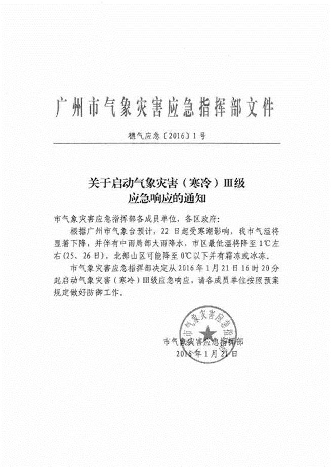 關(guān)于啟動氣象災(zāi)害(寒冷)Ⅲ級應(yīng)急響應(yīng)的通知