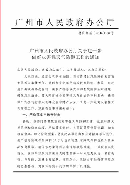 轉(zhuǎn)發(fā)廣州市人民政府辦公廳關(guān)于進(jìn)一步做好災(zāi)害性天氣防御工作的通知
