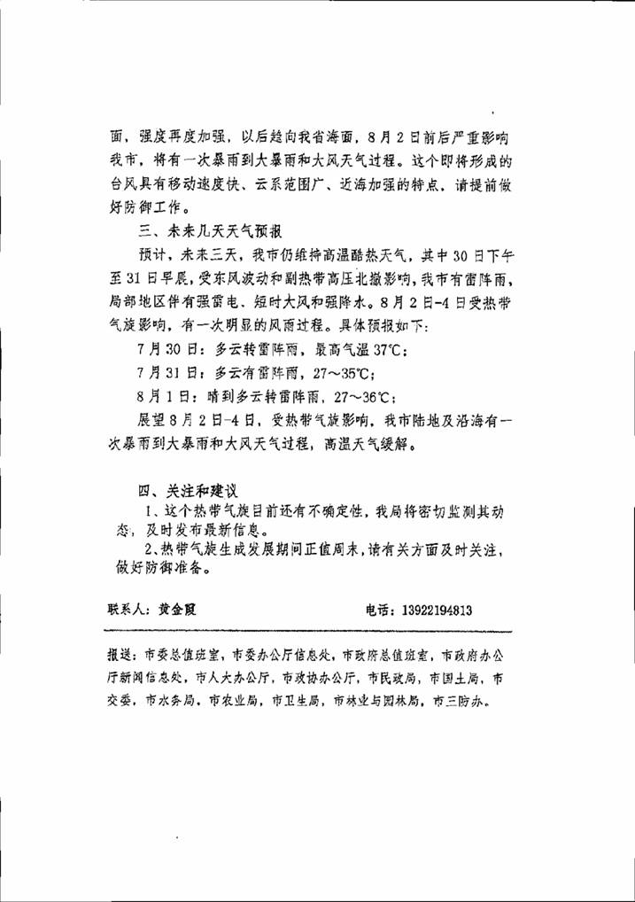 2日到4日我市可能受熱帶氣旋嚴重影響 請提前做好防御工作