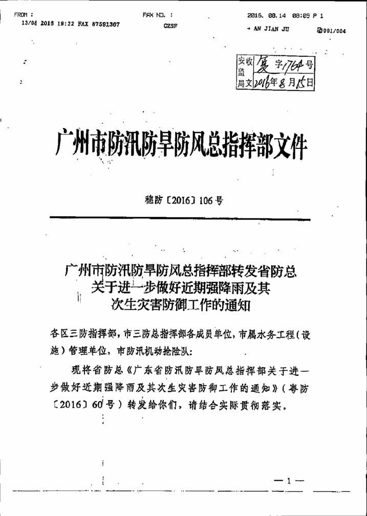 轉發省防總關于進一步做好近期強降雨及其次生災害防御工作的通知