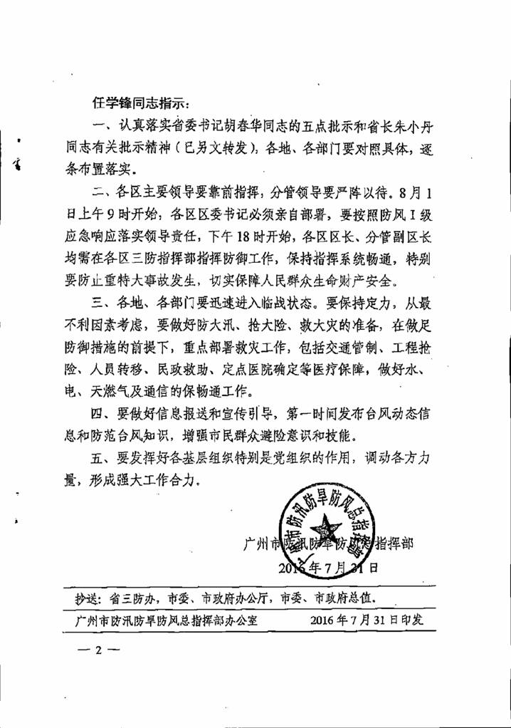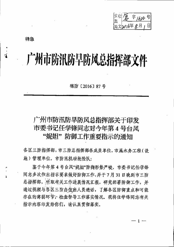 轉發(fā)市三防辦關于印發(fā)市委書記任學鋒同志對今年第4號臺風“妮妲”防御工作重要指示的通知