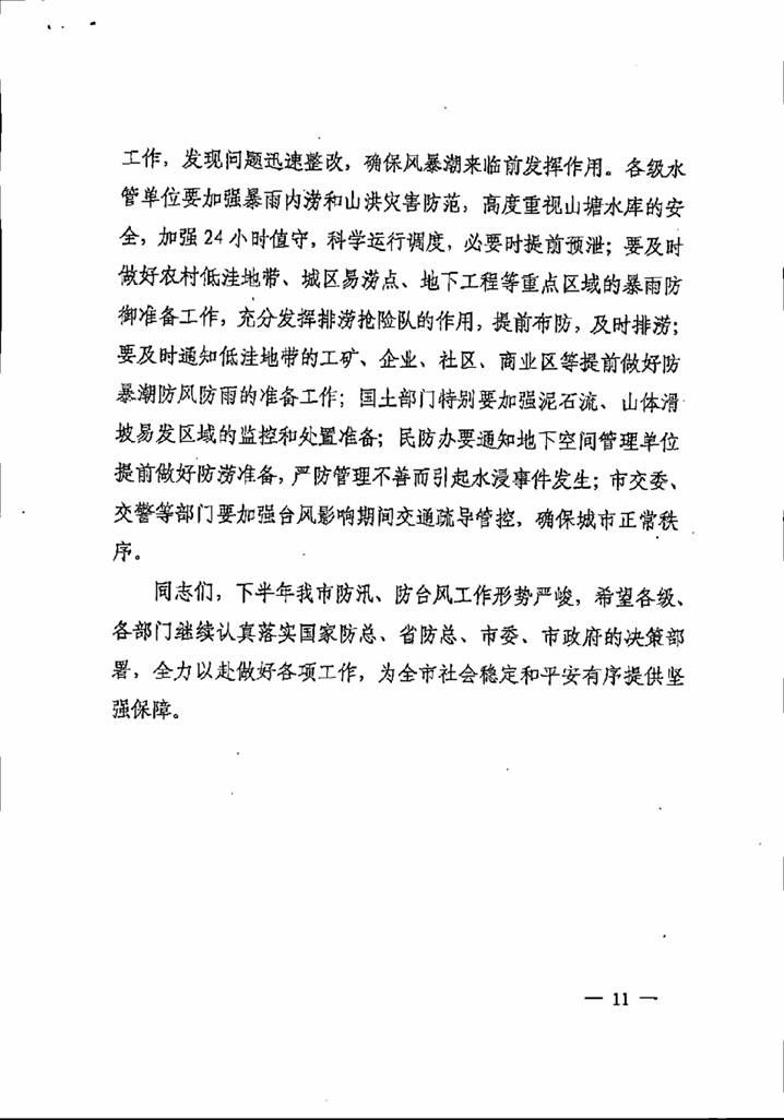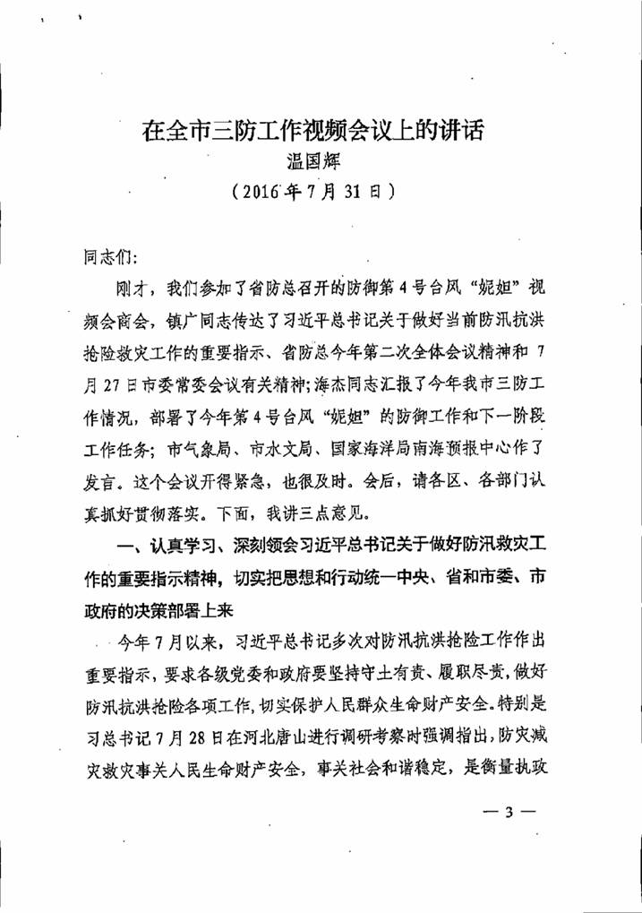 轉發市三防辦關于印發溫國輝市長在全市三防工作視頻會議上講話的通知