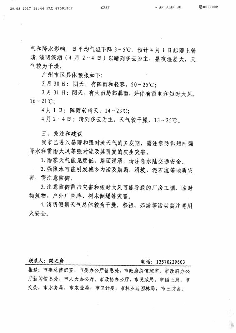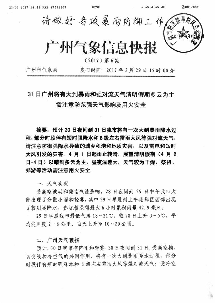 31日廣州將有大到暴雨和強對流天氣,清明假期多云為主,需注意防范天氣影響及用火安全
