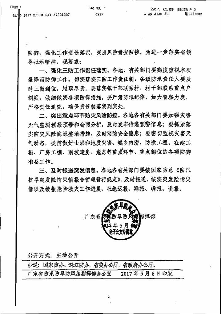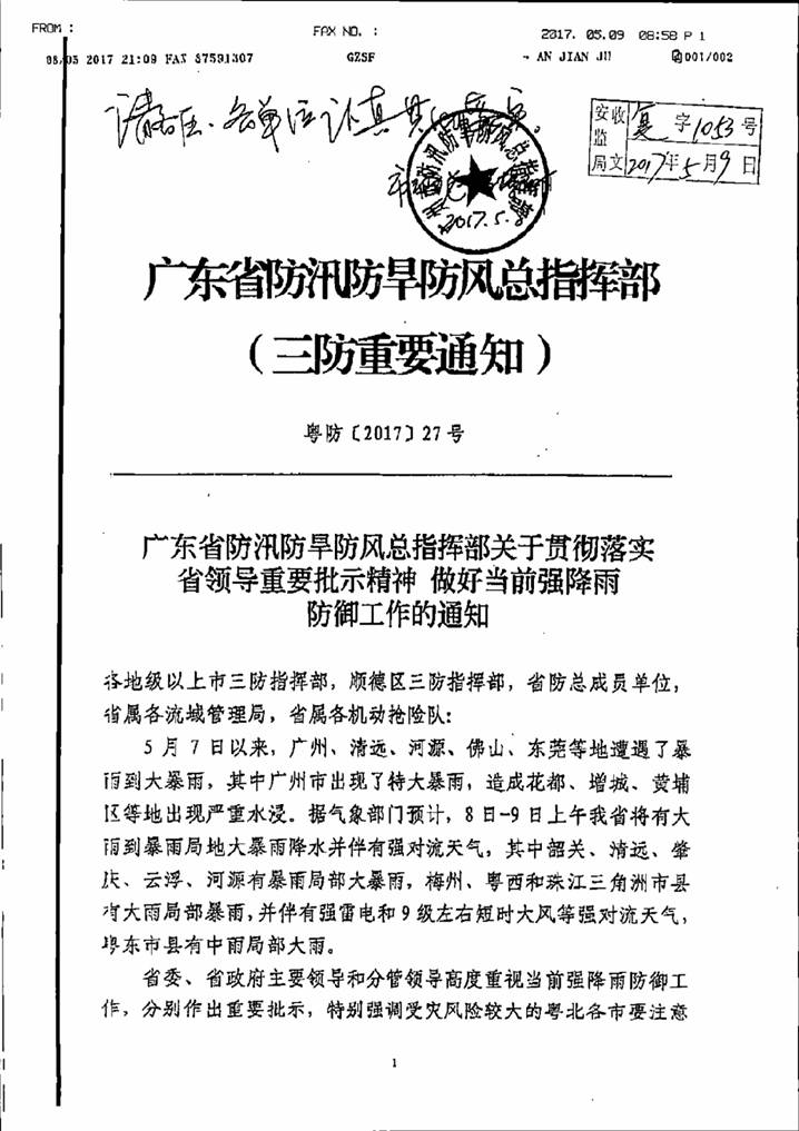 省委、省政府主要領(lǐng)導(dǎo)和分管領(lǐng)導(dǎo)高度重視當(dāng)前強降雨防御工作,分別作出重要批示,特別強調(diào)受災(zāi)風(fēng)險較大的粵北各市要注意防御,強化工作責(zé)任落實,突出風(fēng)險排查防控。為進一步落實省領(lǐng)導(dǎo)批示精神,現(xiàn)要求: