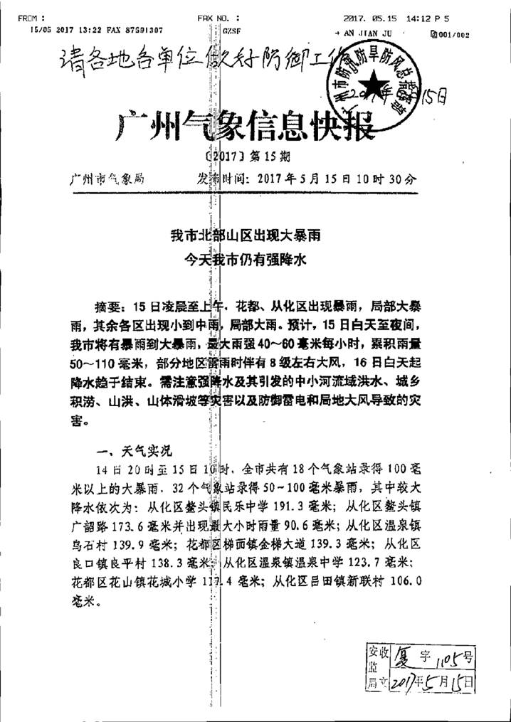 轉發我市北部山區出現大暴雨 今天我市仍有強降水