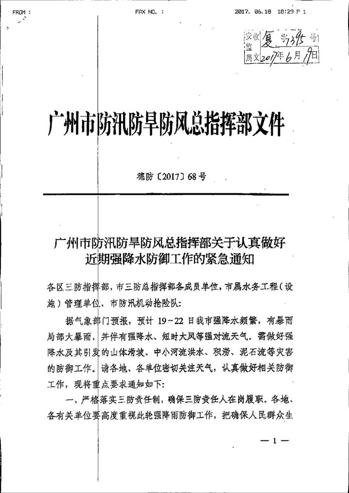 轉發廣州市防汛防旱防風總指揮部關于認真做好近期強降水防御工作的緊急通知