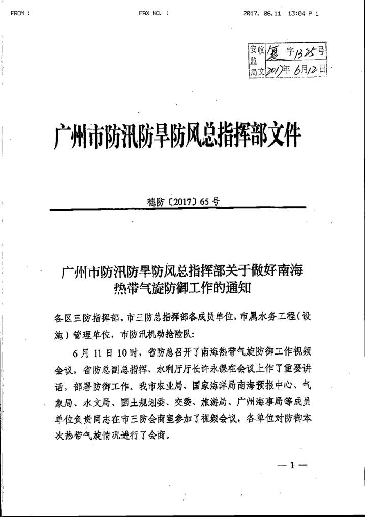 轉發廣州市防汛防旱防風總指揮部關于做好南海熱帶氣旋防御工作的通知