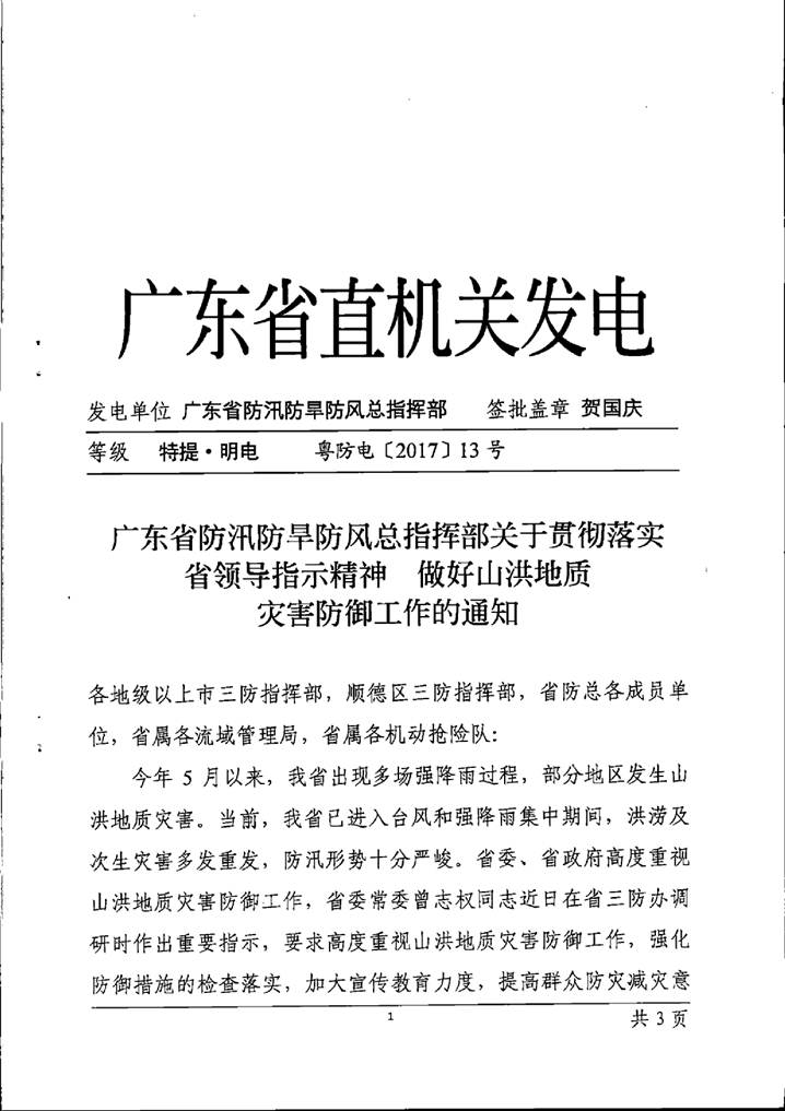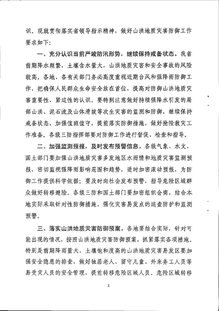 轉發省防總關于貫徹落實省領導指示精神 做好山洪地質災害防御工作的通知