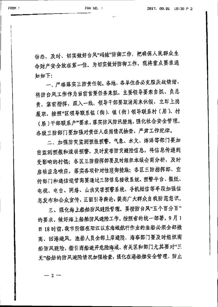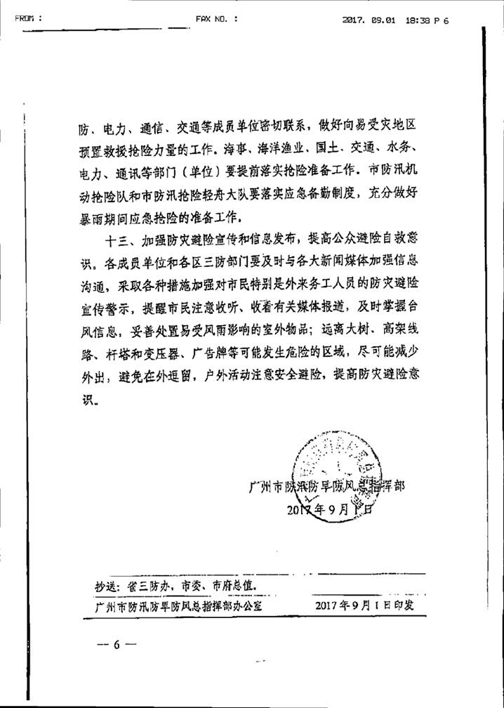 轉(zhuǎn)發(fā)廣州市防汛防旱防風(fēng)總指揮部關(guān)于切實(shí)做好臺風(fēng)“瑪娃”防御工作的緊急通知,請各單位做好防御
