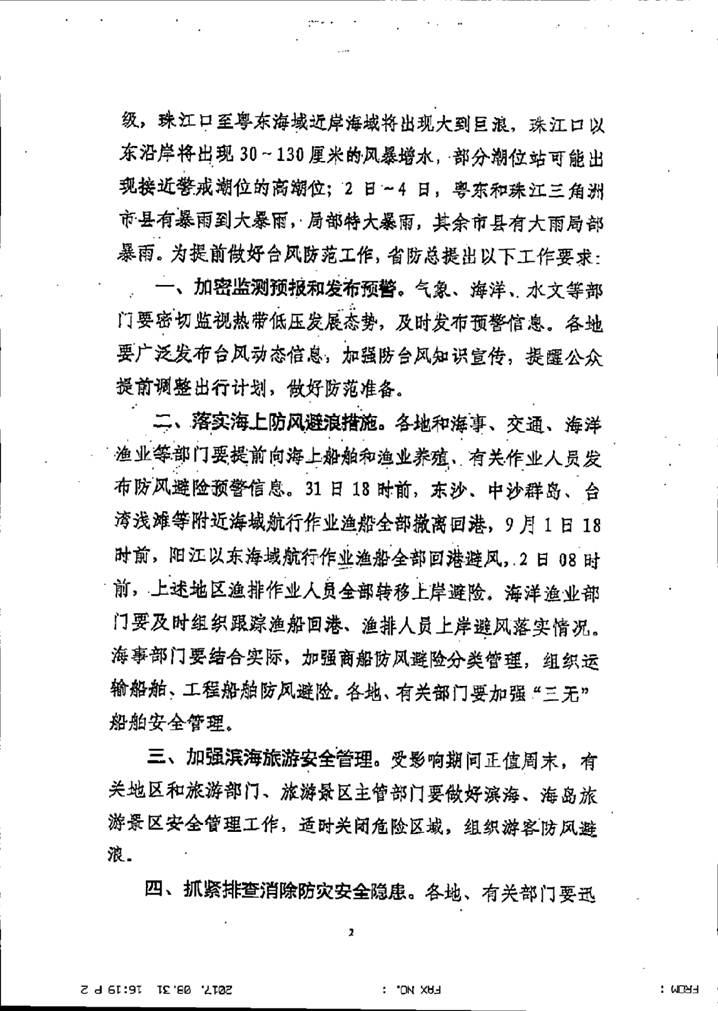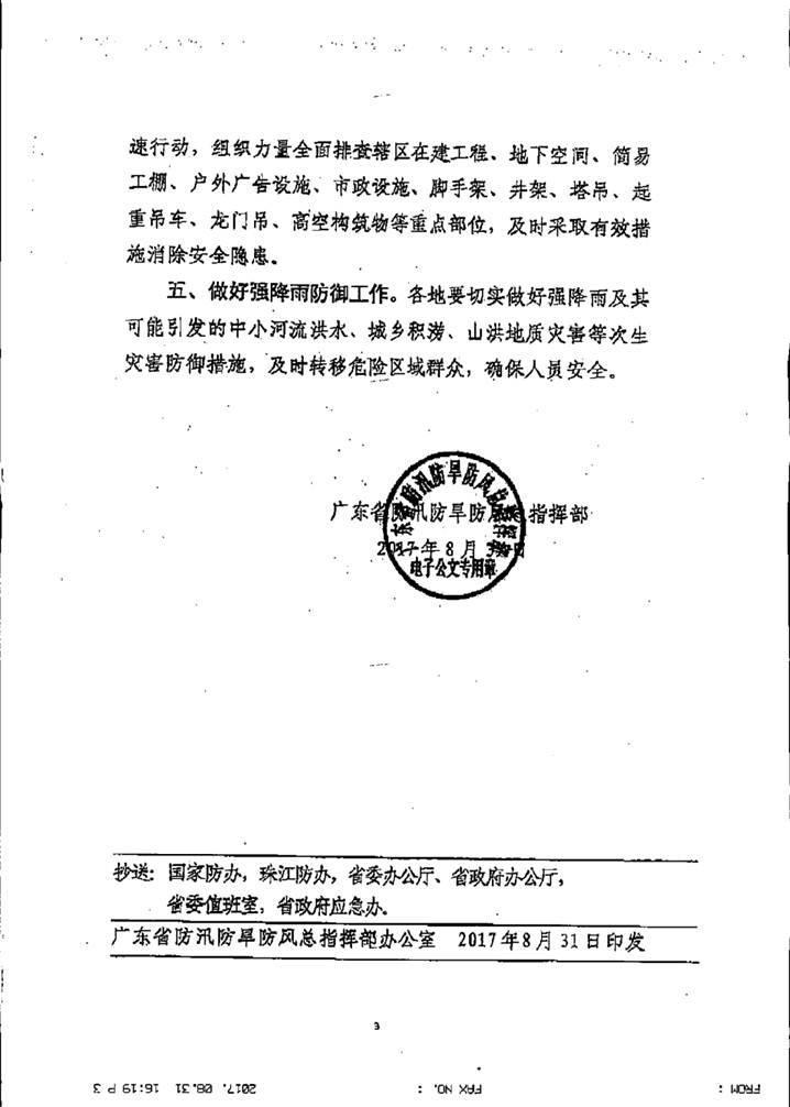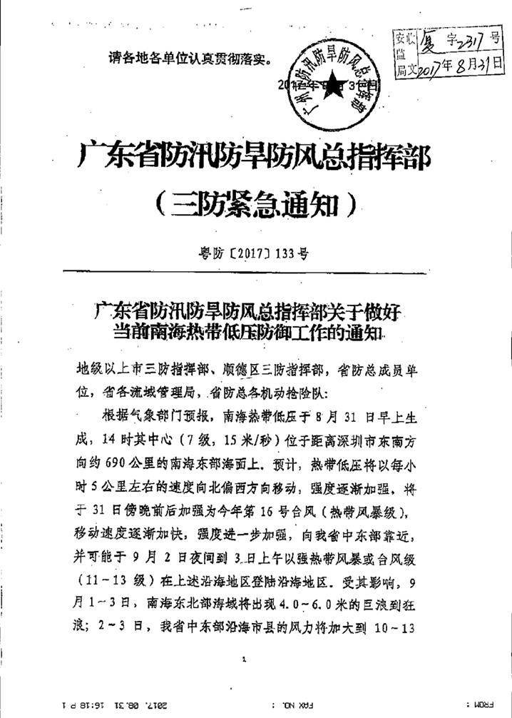 轉發廣東省防汛防旱防風總指揮部關于做好當前南海熱帶低壓防御工作的通知,請各單位做好防御工作