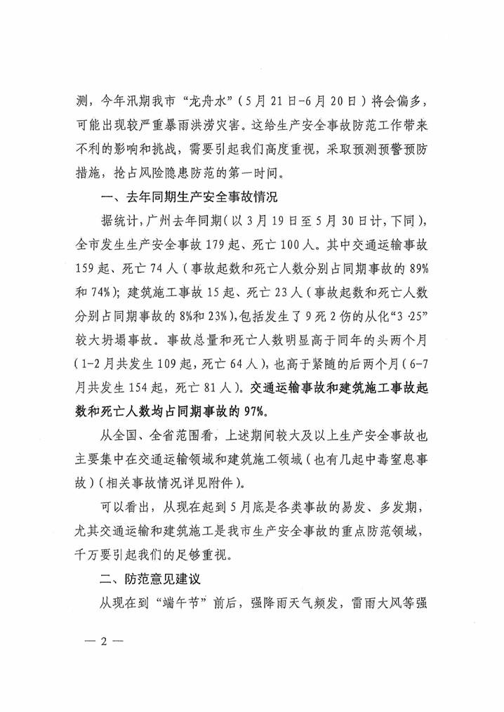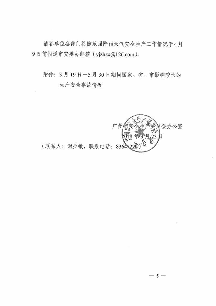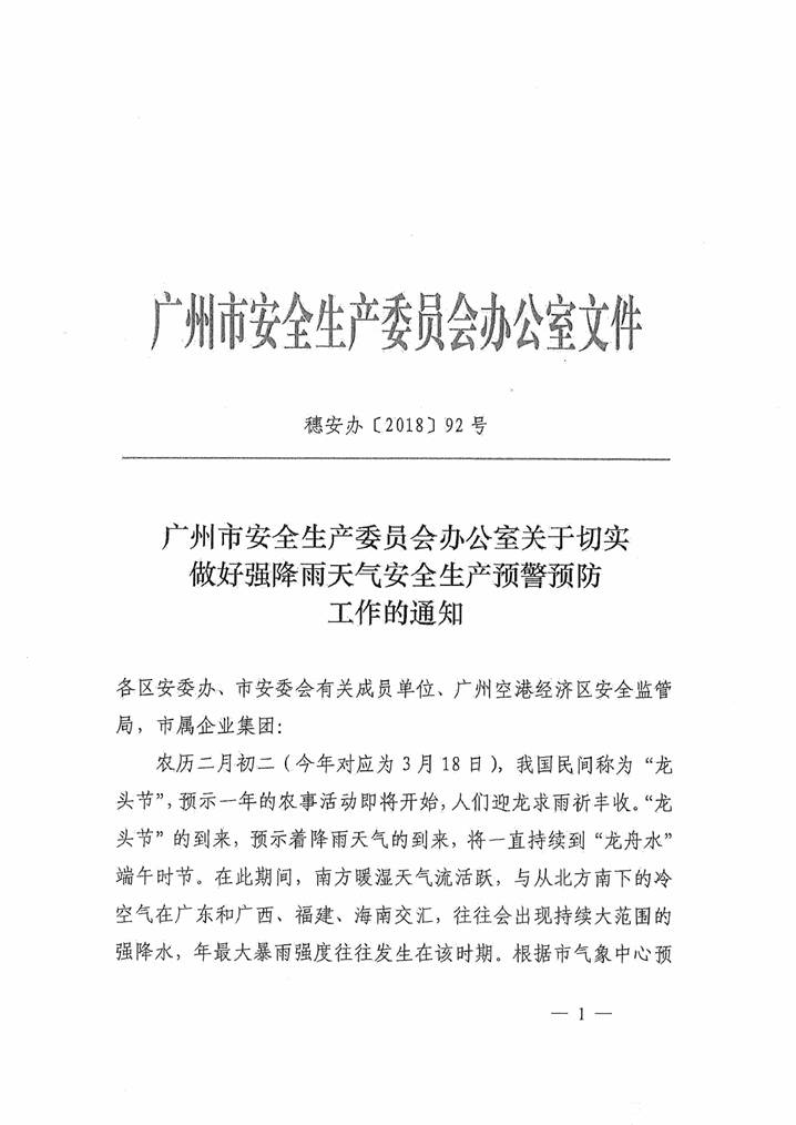 廣州市安全生產委員會辦公室關于切實做好強降雨天氣安全生產預警預防工作的通知
