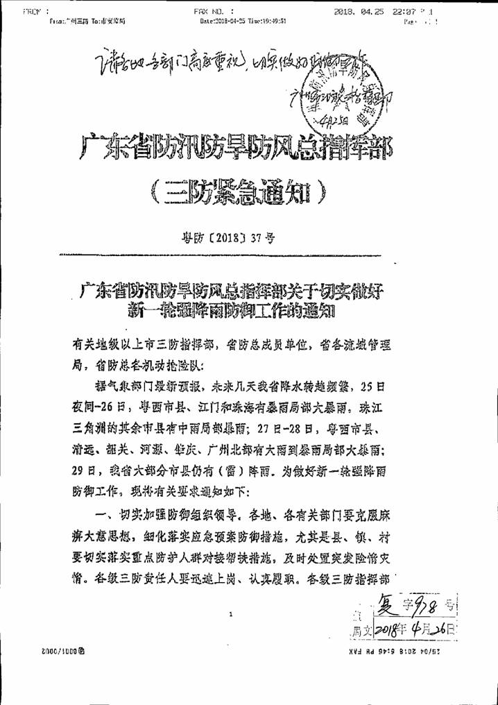 轉發廣東省防汛防旱防風總指揮部關于切實做好新一輪強降雨防御工作的通知