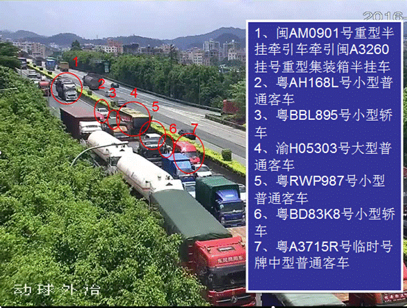 此次事故造成粵BBL895號小型轎車駕駛員江文洪及其車上乘客劉偉杰、江文靜、黃意娣四人當(dāng)場死亡,七車不同程度損壞,事故直接經(jīng)濟損失約413.5萬元。