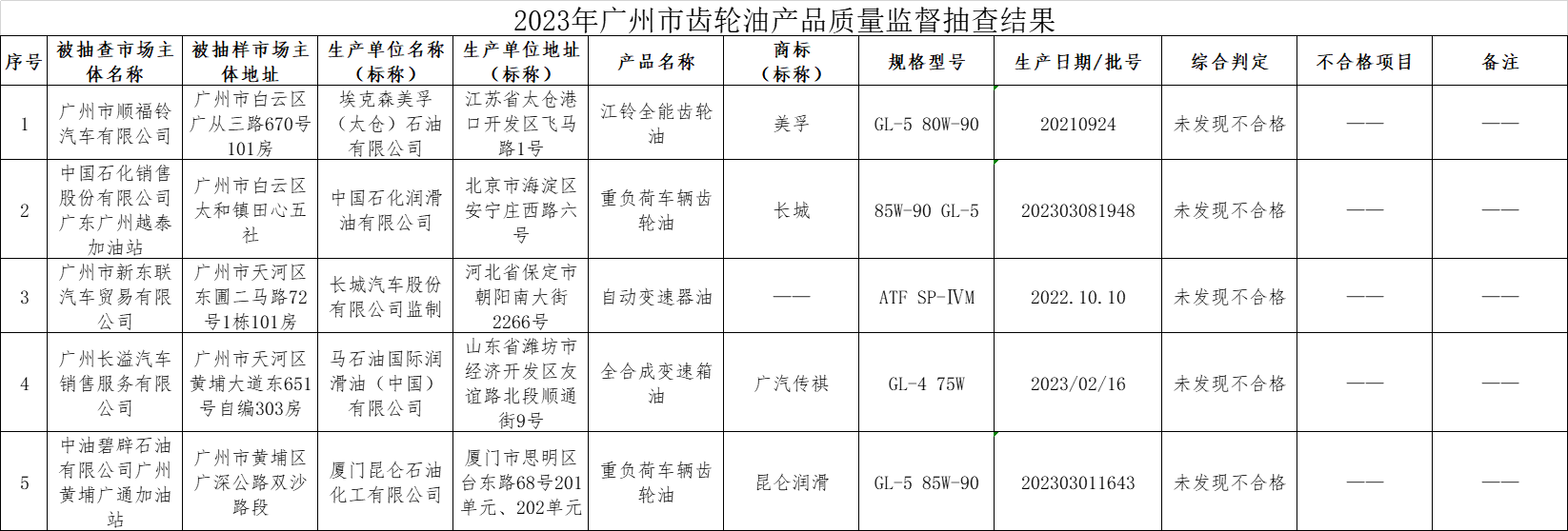 附件:2023年第三季度廣州市齒輪油產(chǎn)品質(zhì)量監(jiān)督抽查結(jié)果
