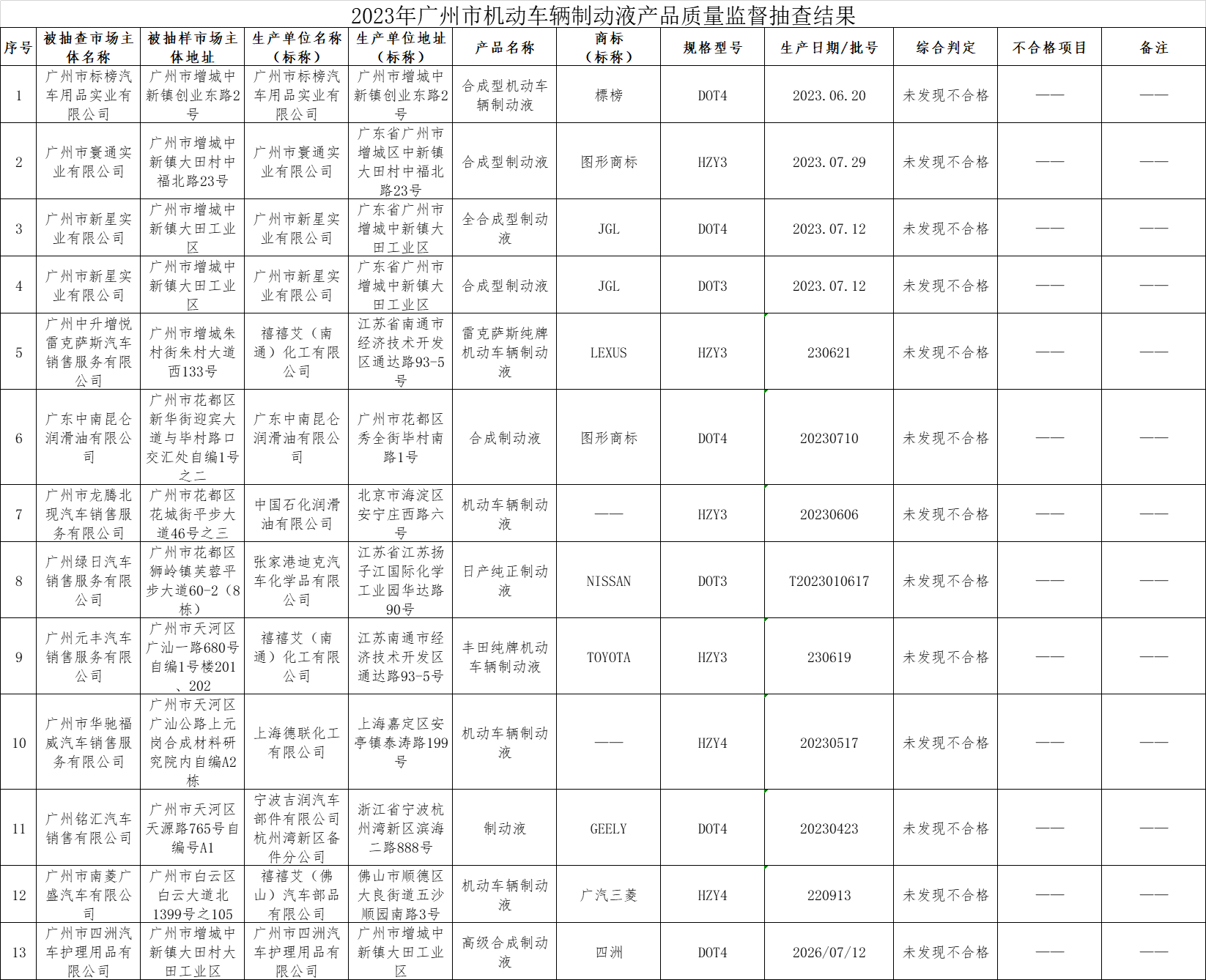 附件:2023年第三季度廣州市機動車輛制動液產品質量監督抽查結果
