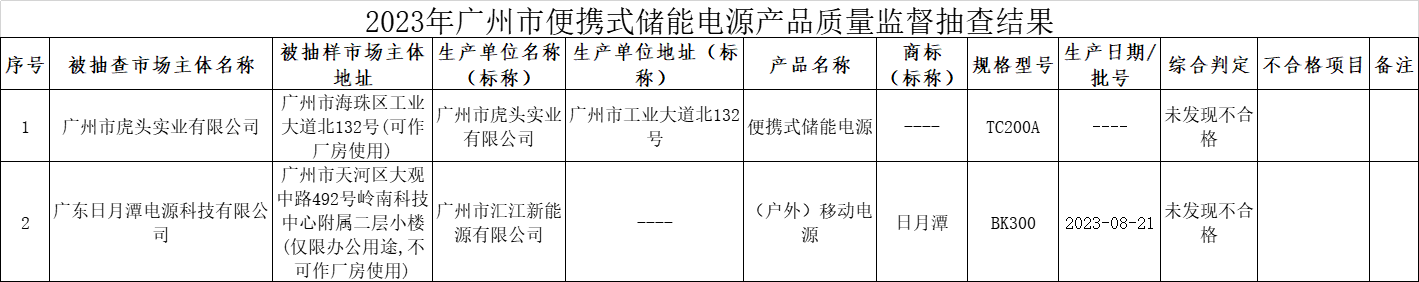 附件:2023年廣州市便攜式儲(chǔ)能電源產(chǎn)品質(zhì)量監(jiān)督抽查結(jié)果