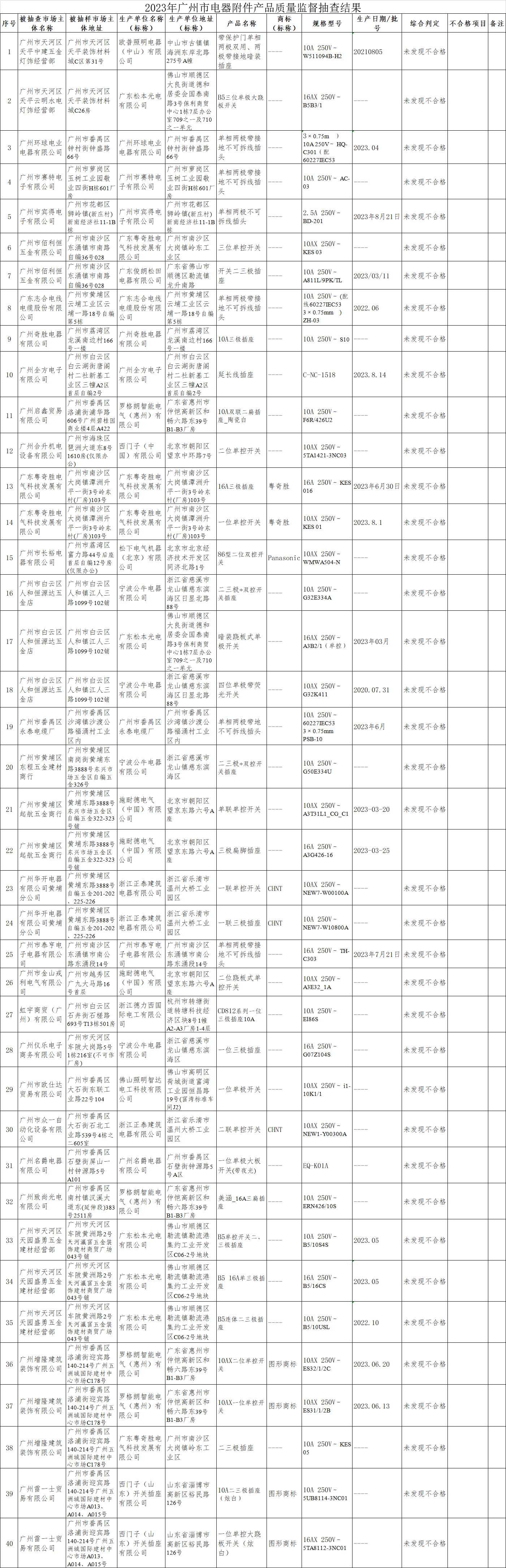 附件:2023年廣州市電器附件產品質量監(jiān)督抽查結果